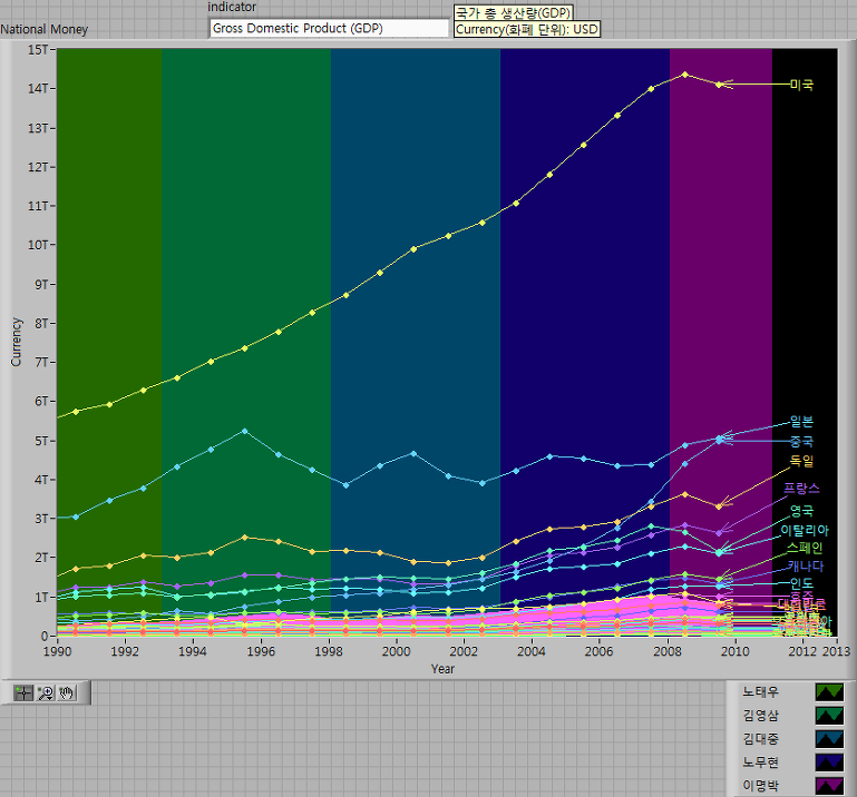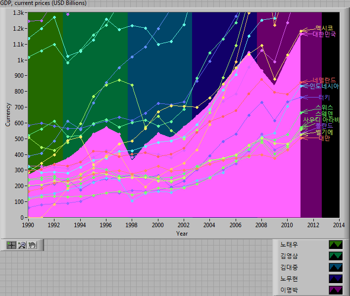 # 남한 | 대한민국의 국내 총 생산량 (GDP) 변화: 세계 각국과의 비교 (~2011) // 아직 정리 중. ## RRA 사용한 소스: IMF (International Monetary Fund) 의 entire WEO (World Economic Outlook) database - http://www.imf.org/external/pubs/ft/weo/2011/02/weodata/download.aspx : WEOSep2011all revised ver.01.xlsx 참고1: 경제지표 및 통계자료 볼 수 있는 곳. (IMF, UN, 통계청 자료 등등) 참고2: 국내총샌산(GDP) 및 경제관련 지표들 설명 2009년도 자료까지 정리했었던 글: 남한의 국내 총 생산량(GDP) 변화: 세계 각국과의 비교..