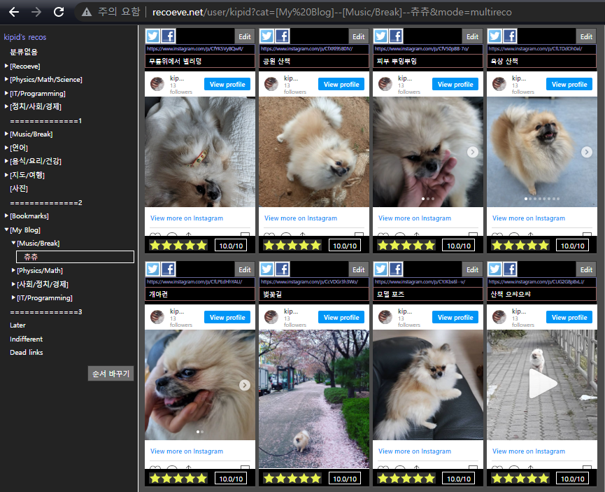 # Recoeve progress본 글은 개인적인 정리 용도로 사용중이라 댓글을 금지하고 있습니다. 댓글 다시면 제가 지웁니다.진행사항을 잡다하게 적자. 다른 할 일은 Works to do 참조 kipid's blog :: Works to do. [Music/Break]--Pet of kipid's Recoeve.net :: image file [Music/Break]--Pet of kipid's Recoeve.net. [Music/Break]--Pet of kipid's Recoeve.net :: iframe . ## TOC## PH2023-05-18: Ver. 0.8.0.2023-03-12: Ver. 0.7.5.2022-07-12: Ver. 0.5.3.2021-04-19: Ver. 0.3.0...